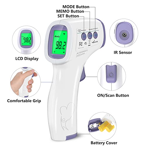 Details: No Touch Digital Forehead Thermometer for Kids Elder & Adults