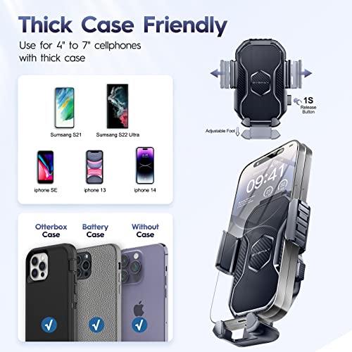 • Fit for All Smart Phone: Longer and stronger arm of this car phone holder allow it to accommodate big phone and tick case.