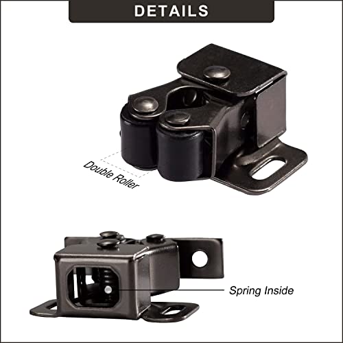 Keenkee 2 PCS Cabinet Latch Double Roller Catch Hardware for Cupboard Closet Cabinet Door Latches and Catches, Black Nickel