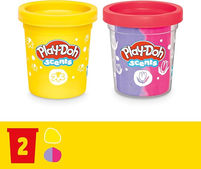 2 cans of modeling compound that smells like flowers and includes a dual-color can for more variety. 2 ounces/56 grams per can (contains wheat)
